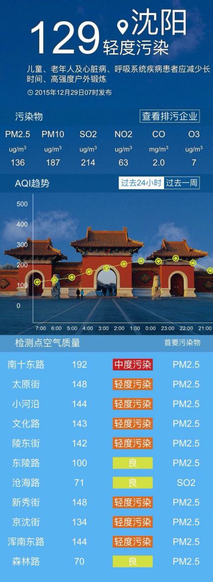 今天是2015年12月29日,星期二。和前兩天相比,沈城的天氣少了一些凜冽的寒冷。但是,從昨天開始就和咱大沈陽糾纏不休的霾天氣依然沒有消散,大家出門前還是要注意防護(hù)。