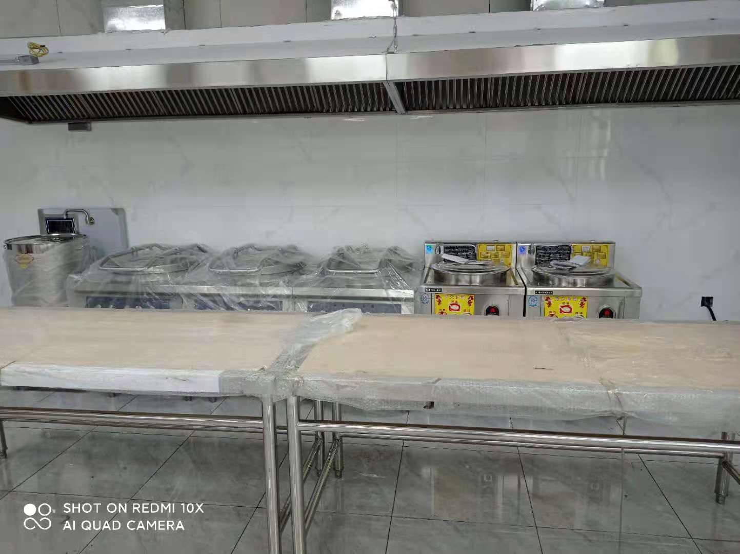 部分設(shè)備安裝完畢;異形工作臺、調(diào)料臺生產(chǎn)中