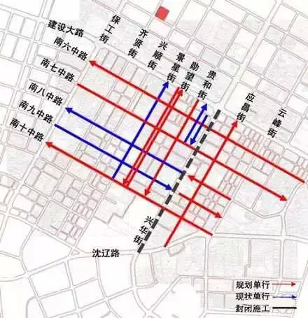 根據(jù)《關(guān)于對(duì)鐵西區(qū)興華南街周邊8條街路進(jìn)行交通組織調(diào)整的通告》顯示:為配合沈陽地鐵九號(hào)線施工,鐵西區(qū)興華南街建設(shè)大路至沈遼路路段11月下旬起將進(jìn)行部分路段半封閉施工,為減少地鐵施工對(duì)交通的影響,結(jié)合周邊道路通行情況,在現(xiàn)狀單行路基礎(chǔ)上,將對(duì)興華南街周邊8條街路進(jìn)行單向通行的交通組織調(diào)整,具體調(diào)整街路為: