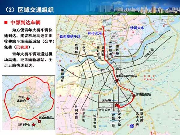 為方便青年大街車輛快速到達(dá),建議機(jī)場(chǎng)高速沈陽收費(fèi)站至渾南新城站(公里)免費(fèi)(已實(shí)現(xiàn))。