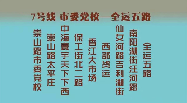 為了方便市民的出行,交通局在工作日的早晚高峰時(shí)段開通7條臨時(shí)公交線路,早高峰南行,晚高峰北行,從多個(gè)方向有效連通市內(nèi)五區(qū)與渾南的交通。7條線路全部為快線,僅在大站???,票價(jià)一元,IC卡有效。