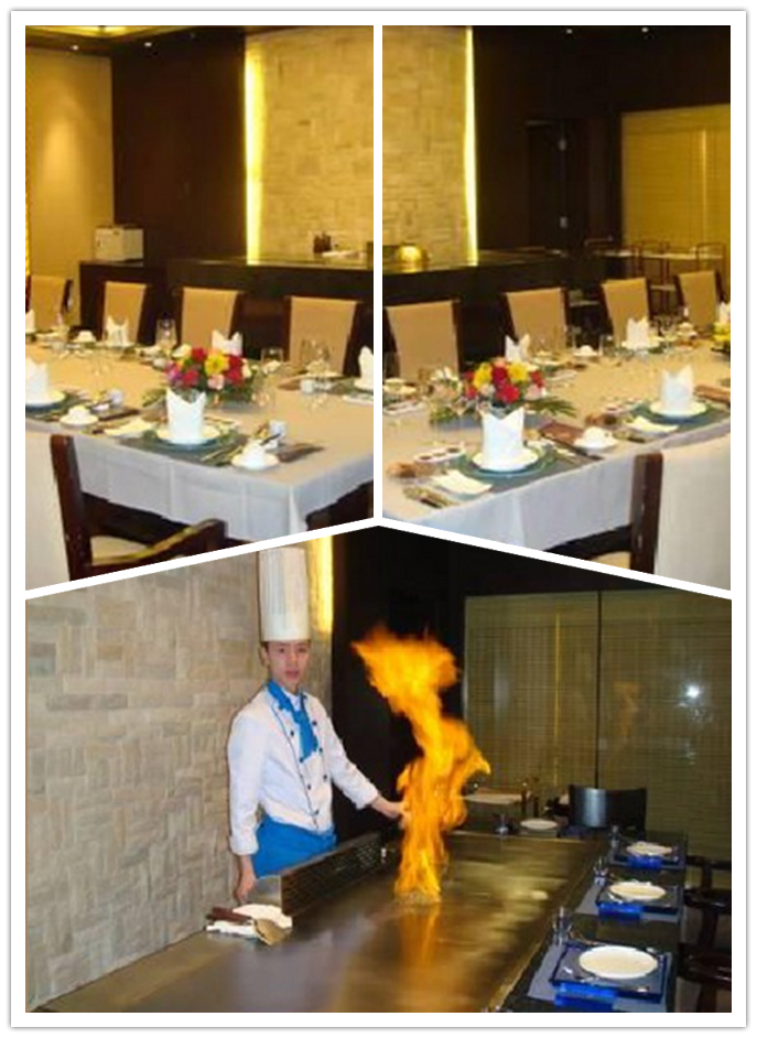 法式鐵板燒餐廳,位于會務(wù)樓一層,聘請專業(yè)主廚,將法式鐵板燒與長白山飲食文化有機(jī)結(jié)合,打造出具有濃厚地方特色的法式山珍鐵板燒。