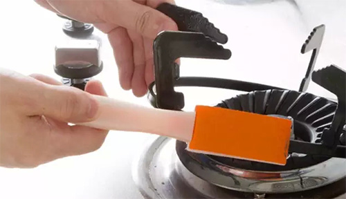 燃?xì)庠畋砻娴挠凸福捎弥竺鏃l后剩下的熱湯涂在其表面,過一會兒用布擦試,再用水沖凈。