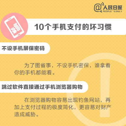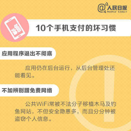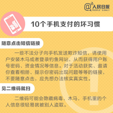 手機(jī)給人們生活、娛樂(lè)帶來(lái)方便的同時(shí),也給我們帶來(lái)了安全隱患,使用手機(jī)時(shí)的一些"壞習(xí)慣"一定要改掉,保護(hù)好個(gè)人網(wǎng)絡(luò)賬戶安全,避免不必要的損失。