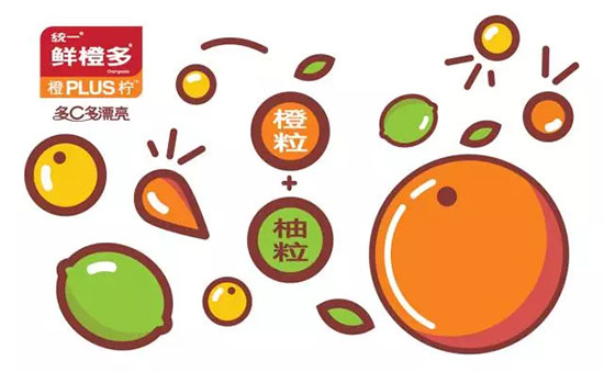 "橙PLUS檸PLUS果粒"組合在一起