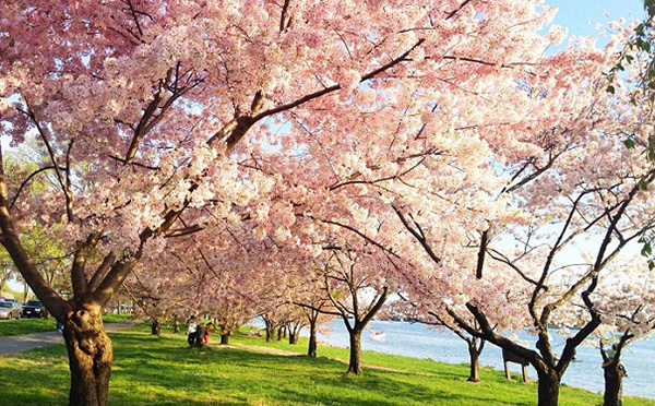 華盛頓櫻花盛開的季節(jié),是華盛頓最美的季節(jié)。櫻花美,花期短,只有兩周左右。華盛頓的櫻花顏色是一色的,淡淡的粉紅,開起來是整棵樹怒放,不僅每朵每簇在春風(fēng)的搖曳中,輕盈、柔和,而且一簇簇、一層層緋紅爭(zhēng)艷的花蕾在萬綠春色的相映下,多彩多姿、琳瑯滿目。