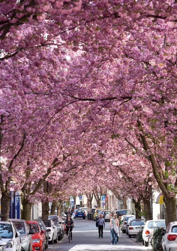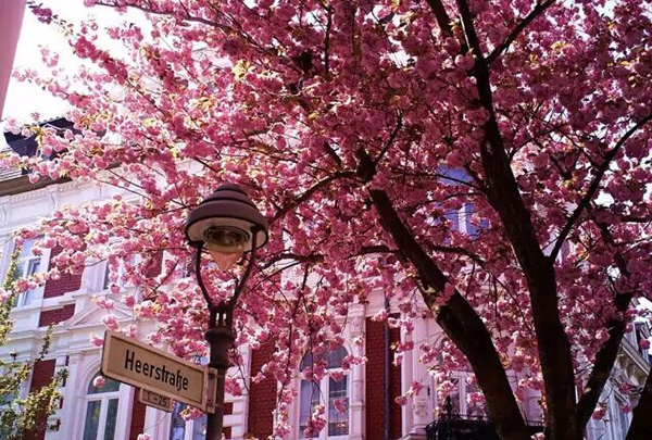 喜歡櫻花的人一定知道德國的波恩小鎮(zhèn),每年的4月底到5月初,是波恩最美的季節(jié)。櫻花大道Heerstrabe兩旁種植著數(shù)不清的櫻花,行走在這里你也許能更深刻的感受到"花海"與"落英繽紛"。