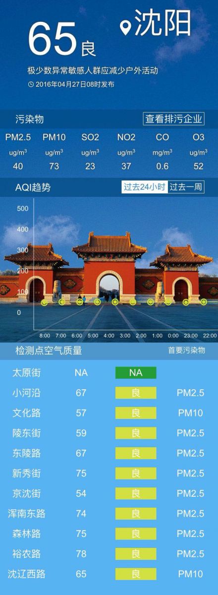 接下來共同關(guān)注沈陽未來幾天的具體天氣情況:今天白天天空的云量將慢慢變少,變薄,因而缺少不了陽光的相伴,風(fēng)力不大,北風(fēng)3-4級(jí),空氣質(zhì)量良,白天最高氣溫為21℃左右;夜間最低氣溫為7℃左右。