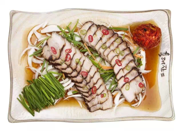 用獨(dú)制的鹵汁鹵制豬五花肉,不僅使豬肉吃起來(lái)絲毫沒(méi)有肉腥味,而且營(yíng)養(yǎng)價(jià)值升級(jí)。搭配韓國(guó)白泡菜和蘿卜醬菜,再沾點(diǎn)秘制蝦醬,爽口的酸味和微辣的蘿卜醬菜一起入口,不僅有效的抓住了五花肉的膩味,反而使肉質(zhì)更加鮮香可口,回味無(wú)窮。