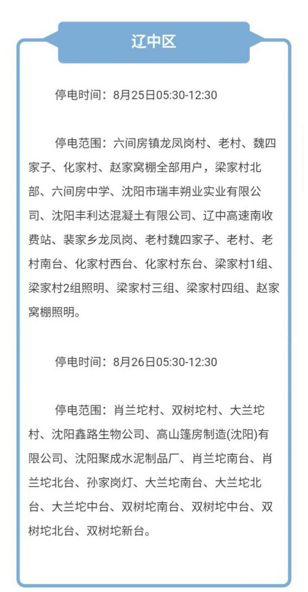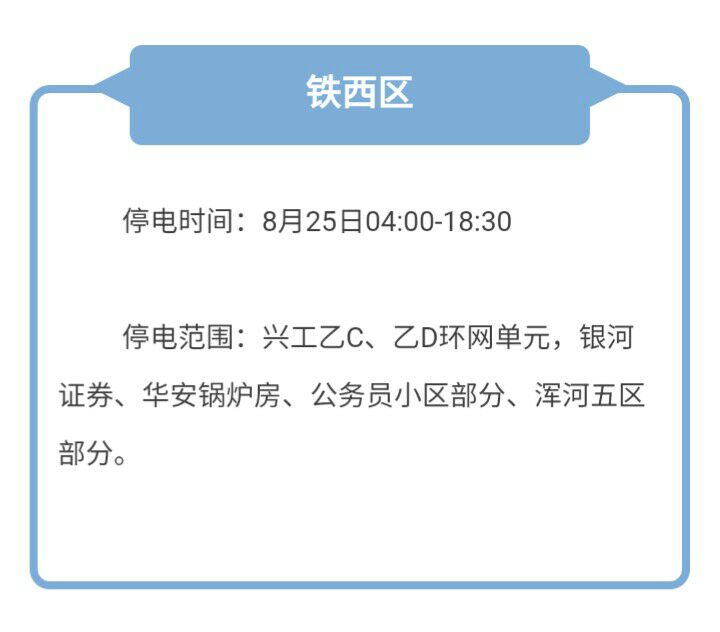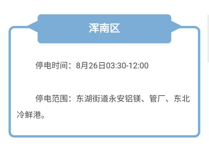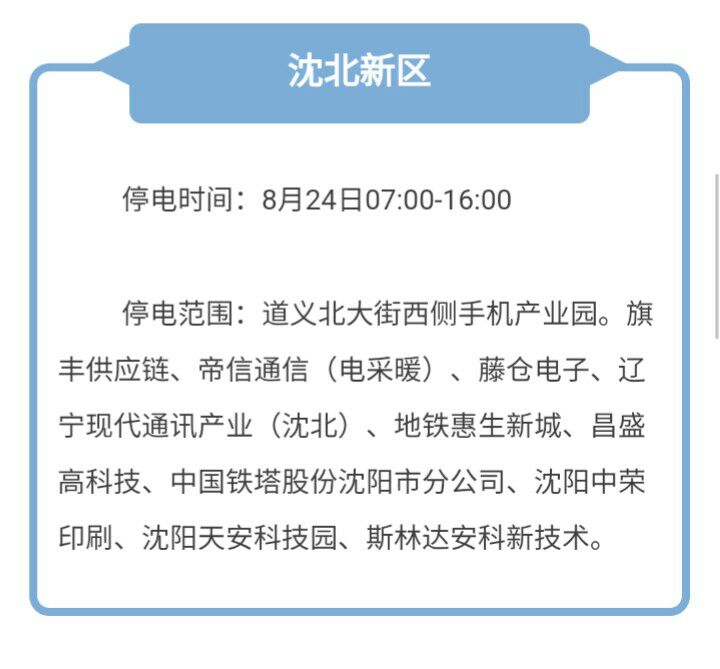本周沈陽有哪四區(qū)停電