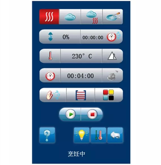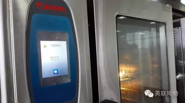 每天工作完畢,選擇自動(dòng)清洗功能,先將內(nèi)膛溫度降到70℃以下(按冷卻鍵),并清理內(nèi)膛內(nèi)大的食物殘?jiān)ǚ乐苟氯潘щy),切斷電源后,每天用粘有清潔劑的抹布清潔不銹鋼面板,然后擦干清洗。