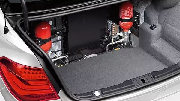 除此之外,BMW 7系防彈車的后備箱內(nèi)還配備了自動(dòng)滅火系統(tǒng)、氧氣瓶和兩組獨(dú)立供電系統(tǒng),當(dāng)發(fā)動(dòng)機(jī)或車底起火時(shí)溫度傳感器會(huì)立即啟動(dòng)自動(dòng)滅火系統(tǒng)。