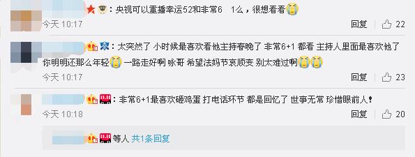 網(wǎng)友紛紛懷念:"從小看《幸運52》、《非常6+1》,謝謝您帶給我們的歡樂!帶給我們這么多童年記憶!"