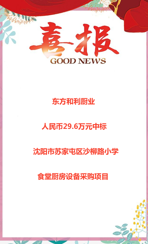 喜報(bào):東方和利廚業(yè)中標(biāo)蘇家屯沙柳路小學(xué)食堂廚房設(shè)備采購項(xiàng)目