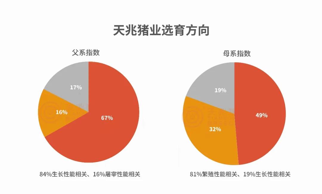 天兆豬業(yè)經(jīng)過充分的市場調研,針對中國市場的需要,結合實際生產(chǎn)條件,以引進的加系、法系種豬為基礎進行持續(xù)選育,并在選育方向上強化了繁殖性能、生長性能、屠宰性能等性狀所占的權重,通過十多年的持續(xù)選擇,不斷提升種豬綜合性能水平。