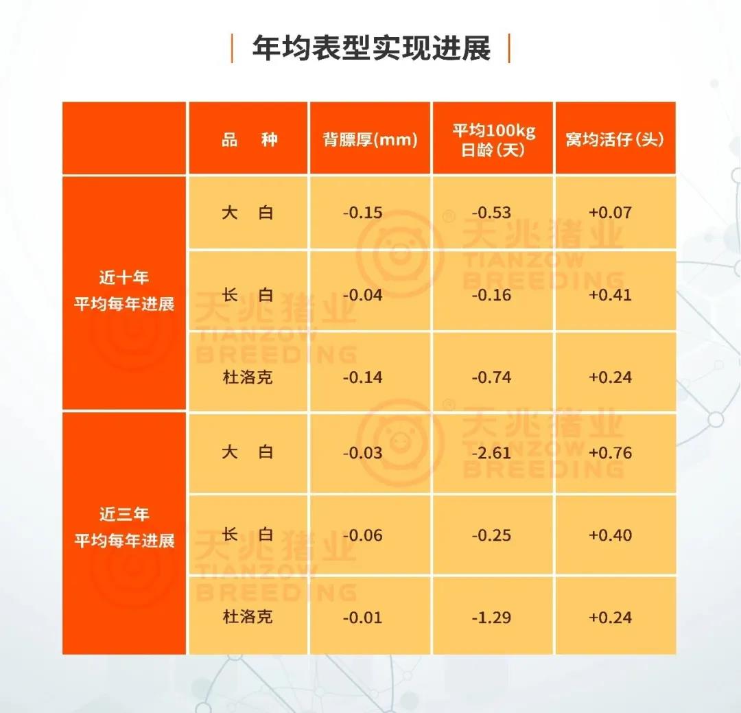 十多年來,天兆豬業(yè)嚴格執(zhí)行好每一個育種環(huán)節(jié),目前已經(jīng)完全實現(xiàn)自主育種,各項指標持續(xù)提高,取得了穩(wěn)定的遺傳進展。