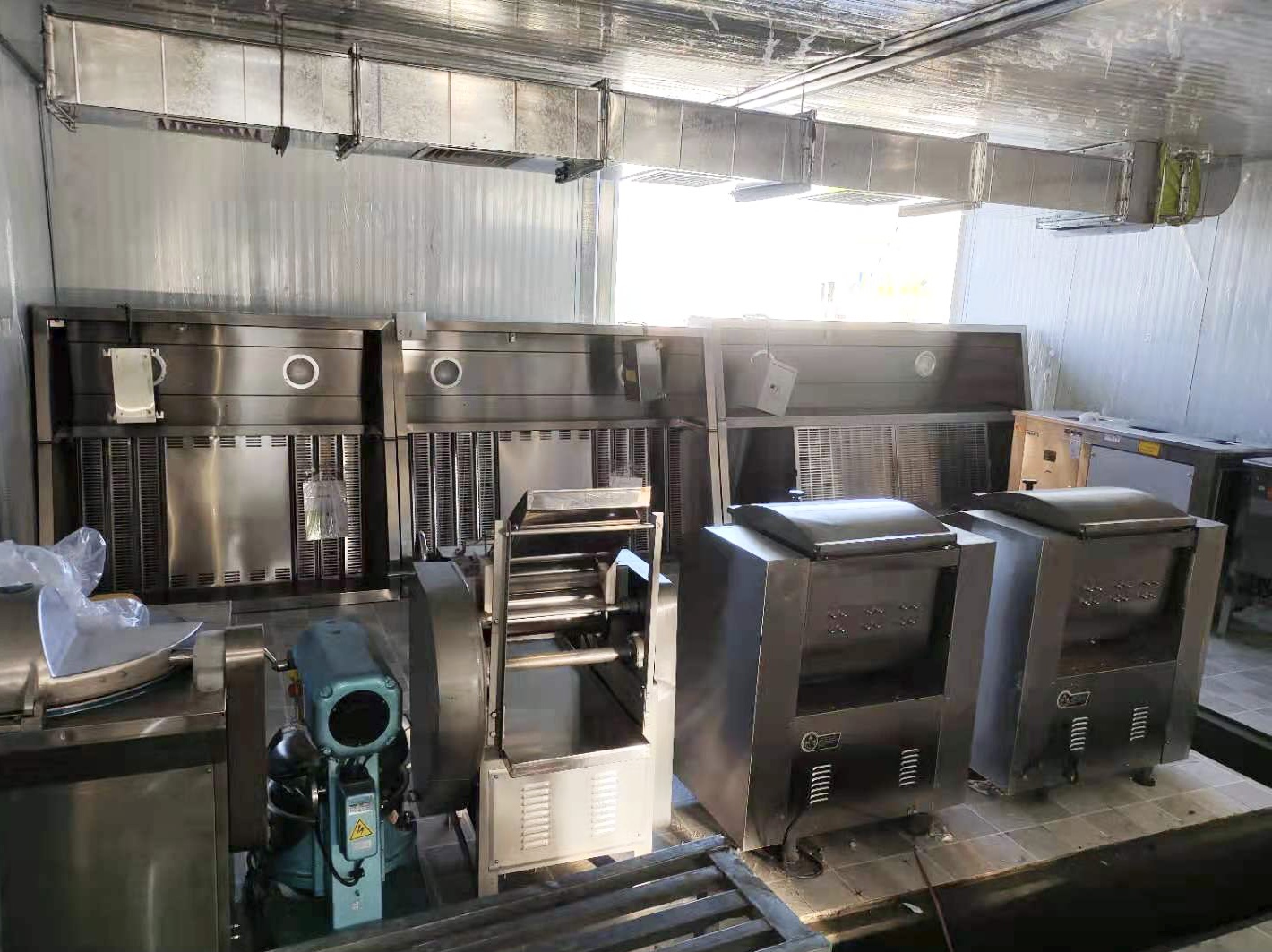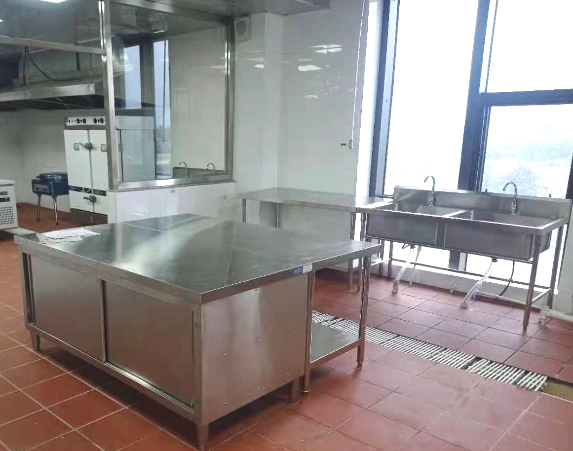 部分設(shè)備安裝完畢;異形工作臺、調(diào)料臺生產(chǎn)中