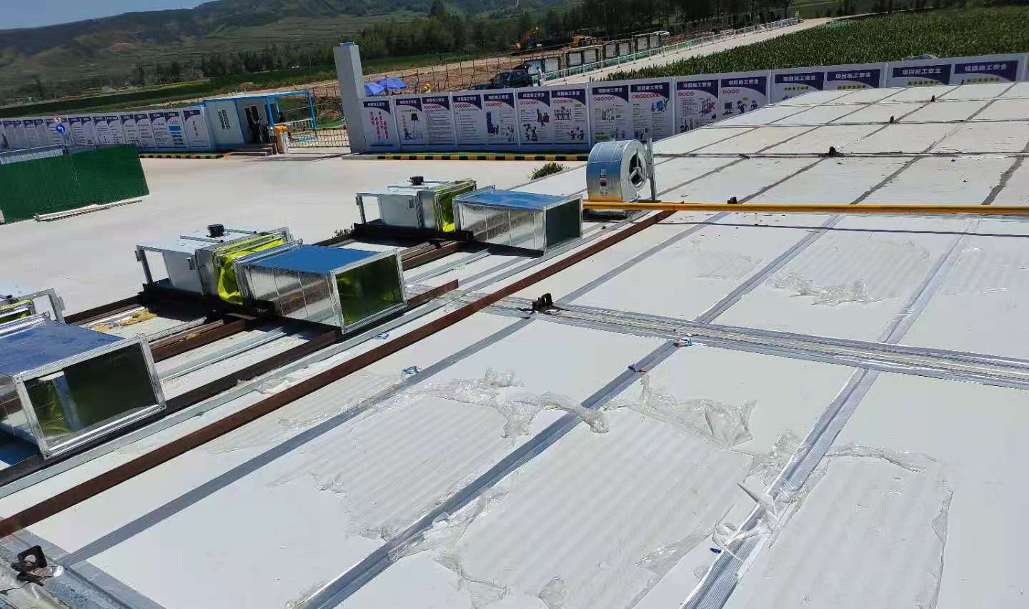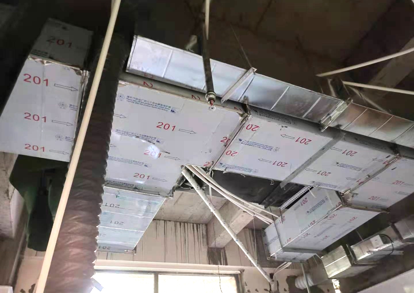 風機管道連接完成,水、電、氣設(shè)備連接完成