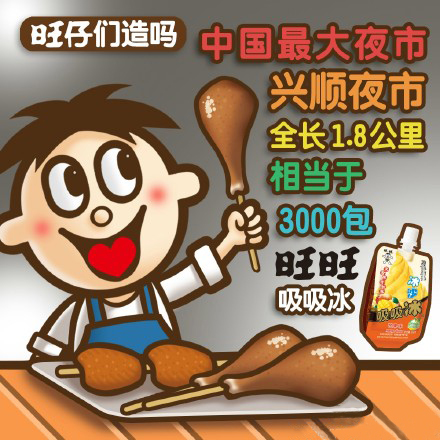 除了愛(ài)運(yùn)動(dòng),旺仔君的另一個(gè)愛(ài)好就是美食。想知道中國(guó)最大的夜市在哪個(gè)城市嗎?答案是沈陽(yáng)市鐵西區(qū)興順街的興順夜市,北起建設(shè)大路,南至沈陽(yáng)工業(yè)大學(xué),全長(zhǎng)約1.8公里,一期共設(shè)有攤位594個(gè)。興順夜市的營(yíng)業(yè)時(shí)間是17時(shí)30分至23時(shí)。它的長(zhǎng)度相當(dāng)于3000包旺旺吸吸冰。旺粉有去過(guò)哪些美食街?最喜歡的美食是?