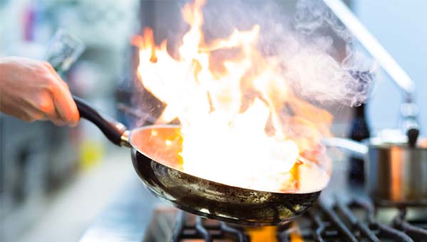 高溫伴著爆鍋聲和沖天的火光,