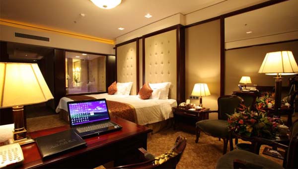賓館由A、B座兩棟樓組成,擁有各類客房179間。設(shè)有無(wú)煙樓層和行政樓層??头繉挸ㄊ孢m,典雅時(shí)尚。 餐廳擁有風(fēng)格各異、規(guī)格不等的中餐廳、咖啡廳、日式餐廳及各類宴會(huì)廳19間,可提供遼菜、粵菜、川菜、日式料理、西餐以及特色滿族美食等。