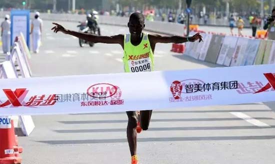 跑完42.195公里的兩千多人中,特邀的十幾名非洲運動員體現(xiàn)了專業(yè)水平,肯尼亞人拉扎魯斯的男子奪冠成績是2小時12分04秒。女子全程馬拉松賽的冠軍來自肯尼亞的名叫AIYABEI VALARY JEMELI,以2小時32分33秒摘得女子全程賽冠軍。