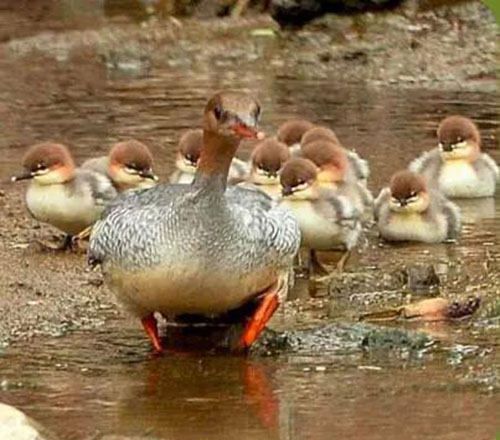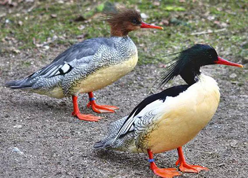 這種兩脅羽毛上具有黑色鱗紋的鴨科鳥類早先的名字叫鱗脅秋沙鴨。后來,鳥類學(xué)家發(fā)現(xiàn)它們的原產(chǎn)地是中國吉林省長白山地區(qū),所以才改稱它為中華秋沙鴨。中華秋沙鴨距今已生存了上千萬年,但目前數(shù)量大約僅存2200。他們習(xí)慣利用樹齡較大樹木的天然樹洞筑巢,但此類樹木的數(shù)量正在逐年減少,致使該物種需要額外保護。