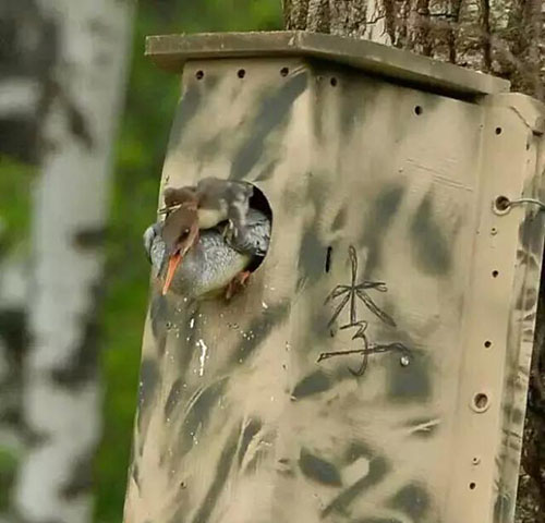 John Bradburn先生在通用汽車主要負責(zé)廢舊物再利用項目。在得知中華秋沙鴨的生存困境之后,他聯(lián)合濕地國際北亞區(qū)協(xié)調(diào)員Diana Solovyeva博士將廢舊的雪佛蘭Volt沃藍達電池組外殼改造成了一款愛心巢箱,該巢箱還設(shè)置了一個額外的虎口逃生通道,方便中華秋沙鴨快速脫險。