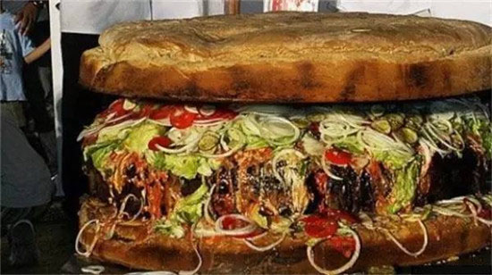 著一款漢堡并不是以食材的珍貴而上榜,這款漢堡入選了吉尼斯世界紀錄,重達777磅重,不過說心里話,看一看的感覺就不是很好,食欲什么的可能離家出走之后也是不會再回來了。