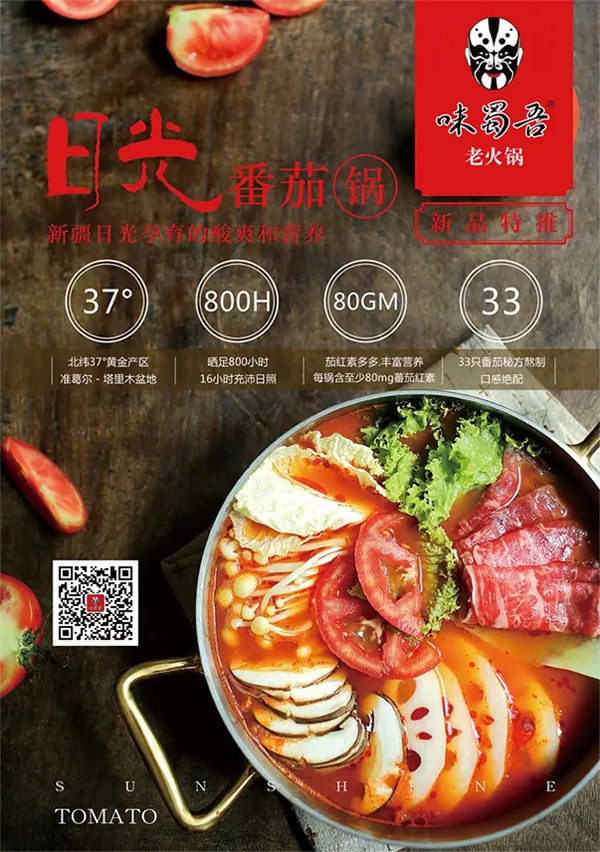 味蜀吾經(jīng)過許久的探尋,研發(fā),秘調(diào),終于在最適合的冬季,最感恩的日子里迎來了最暖心的日光番茄鍋。